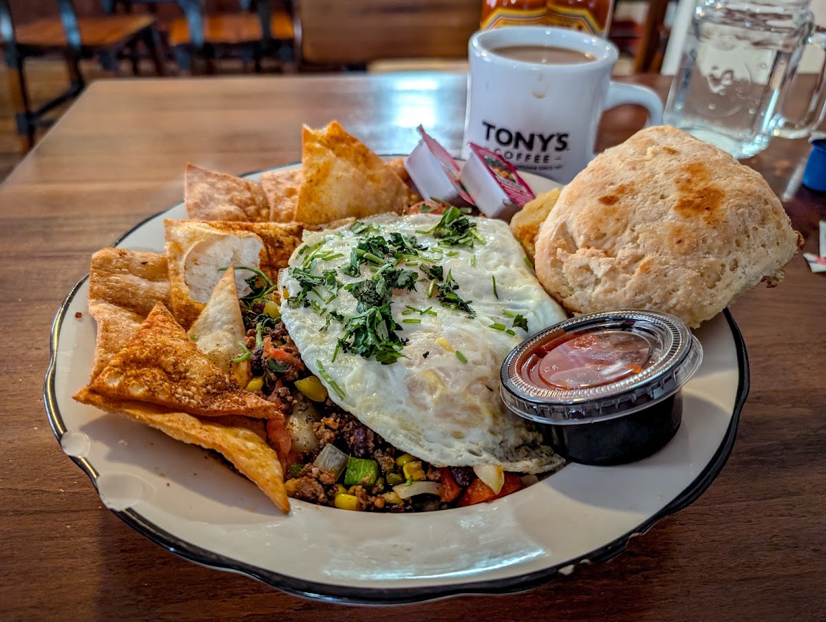 The atmosphere is thoughtfully warm, marked by a touch of rustic charm that feels both homey and lifted by subtle, cheerful details. The hum of conversation blends with the clatter of dishes and the rich aroma of freshly brewed Tony’s Coffee, setting a rhythm that’s inviting without ever rushing you. It’s the kind of place where families gather easily, where kids find little corners to play, and where folks mindful of hearty, honest food feel right at home.