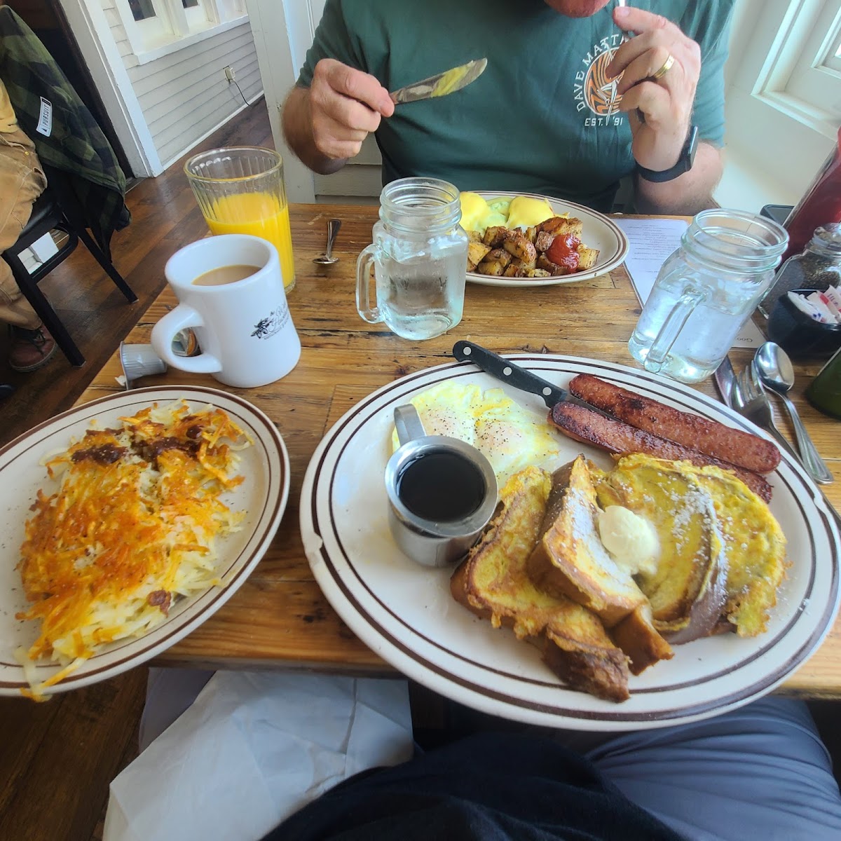 Service was quick and consistent on coffee refills. The food was delicious, the waffle was crisp on the outside and soft on the inside. The eggs Benedict was the best I have ever had. It was super busy and filled considering it was a Tuesday morning but well worth experiencing.